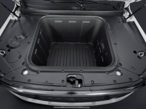在储物方面,得益于动力系统的高度集成化,大道EV还有着210L的前备箱,在日常出行或工作中,它可以放一些私人物品或是平常工作随手要用的工具,若是需要夜间作业,大道EV的前备箱还有贴心的照明设计,且防尘、防水,凭借超强的密封性解决了皮卡储物痛点。
