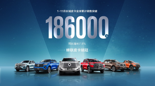 近日,长城皮卡公布了11月销量数据:销售16291台,同比增长18.05%;1-11月累计销售186298台,同比增长7.8%。国内终端市占率近50%,中国每卖出两台皮卡,就有一台是长城。其中,长城炮11月全球销售10516台,累计39个月销量过万,蝉联中国皮卡销量冠军。
